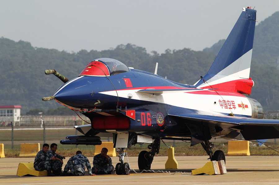 地面整備中的空軍八一飛行表演隊的殲10戰(zhàn)機。