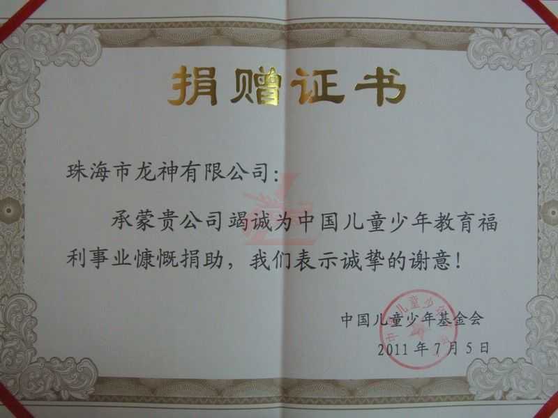 我司為支持中國(guó)兒童少年基金會(huì)的發(fā)展捐獻(xiàn)了自己的愛(ài)心,為著祖國(guó)的未來(lái)貢獻(xiàn)一份綿力。