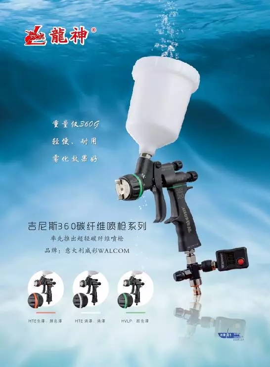 吉尼斯360碳纖維噴槍系列 2017-10-17 20563 經過多年的研究、調查、噴涂和阻力測試,龍神攜手意大利威彩進行噴涂世界的革新,使用最輕的高性能材料--碳纖維,給市場帶來了最輕的、最高性能的和最具有創新的噴槍。