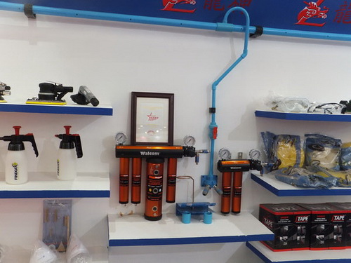 本次展出的產品有:鋁合金修復套裝、耐溶劑噴壺、意大利威彩噴槍、鈑金修復套裝、高精密干燥過濾器、法國佩釜快速接頭、壓縮空氣供氣管路等。